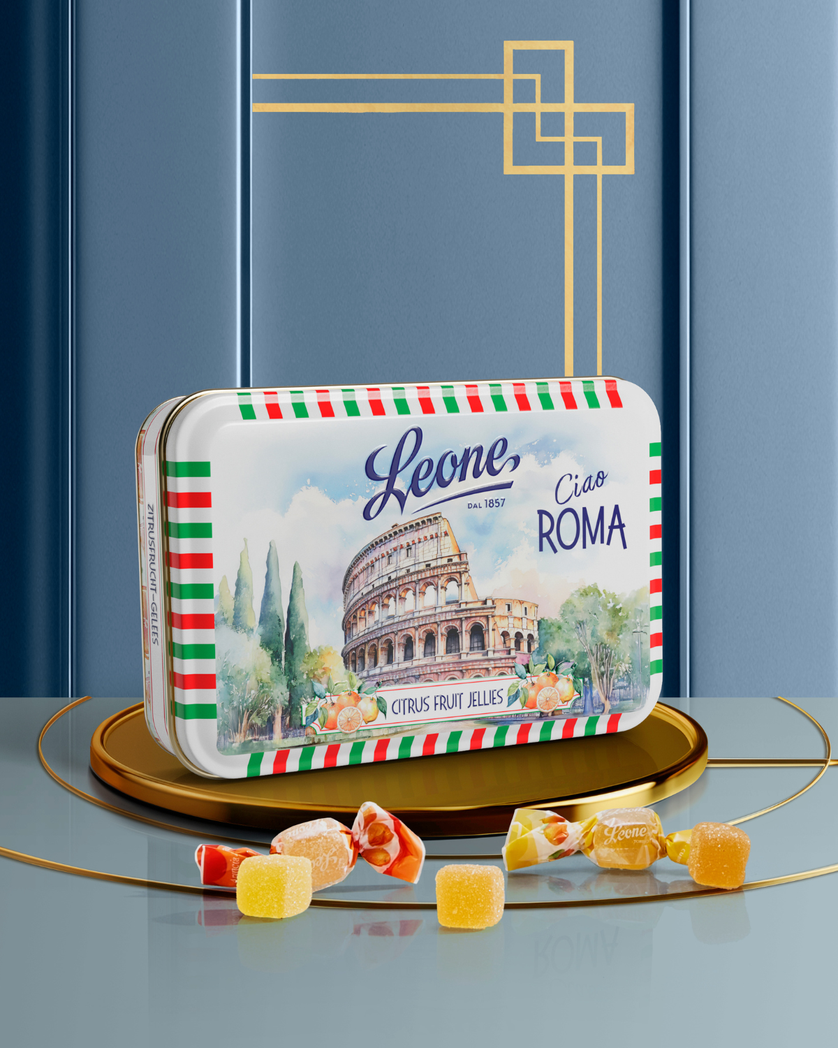 Gelée agli agrumi dal gusto vivace, custodite in una latta-cartolina che celebra il Colosseo e il fascino intramontabile di Roma. Un connubio di tradizione e vitalità che non smette mai di stupire, proprio come la città eterna.
